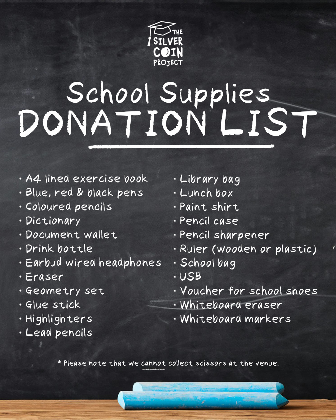All donated items will be distributed to local primary schools in the Macarthur region, thanks to the Silver Coin Project.